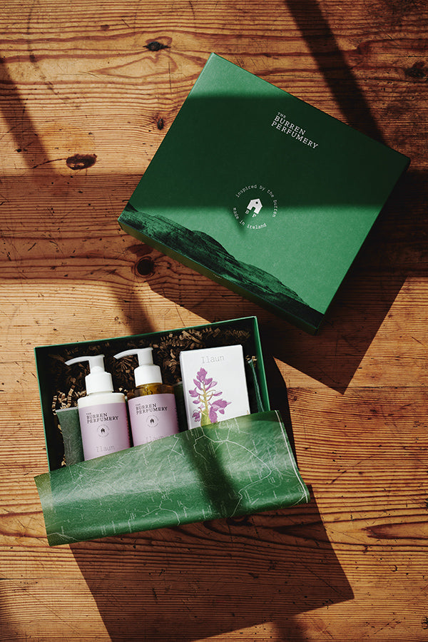Buy Ilaun body lotion and castile soap together in our new medium-sized gift box. A fresh light perfume. The top notes of the wild Fragrant Orchid capture the scents of a summer's day and blends with the woody base notes of ferns, lichens and mosses.